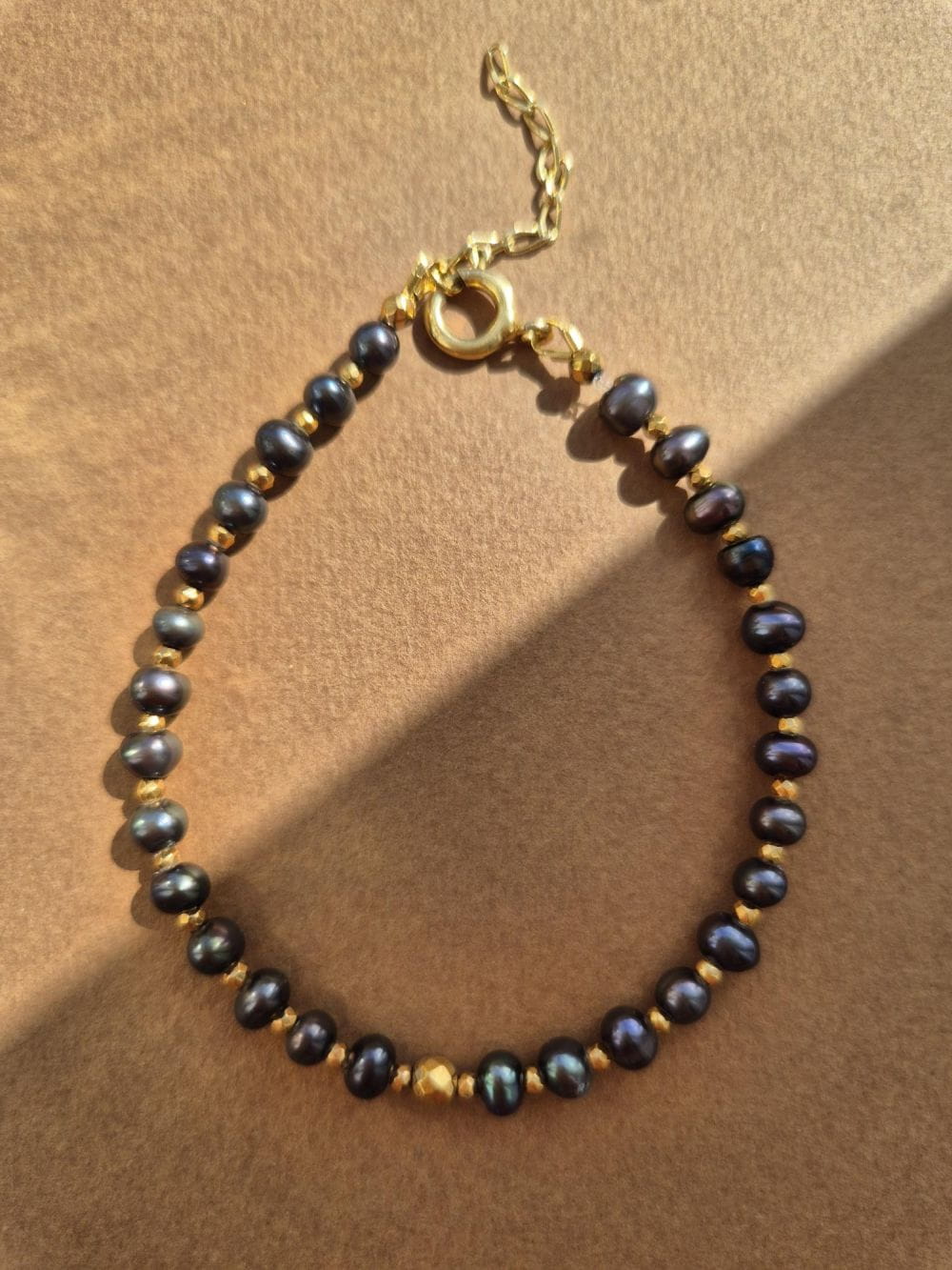 Bransoletka z czarnych pereł i złotych kulek – elegancka bransoletka
