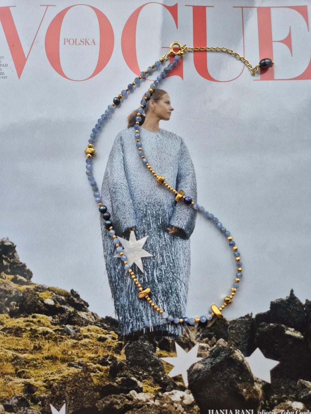 Materiały: szafir, hematyt (pozłacany), czarne perły, pozłacane srebro 925