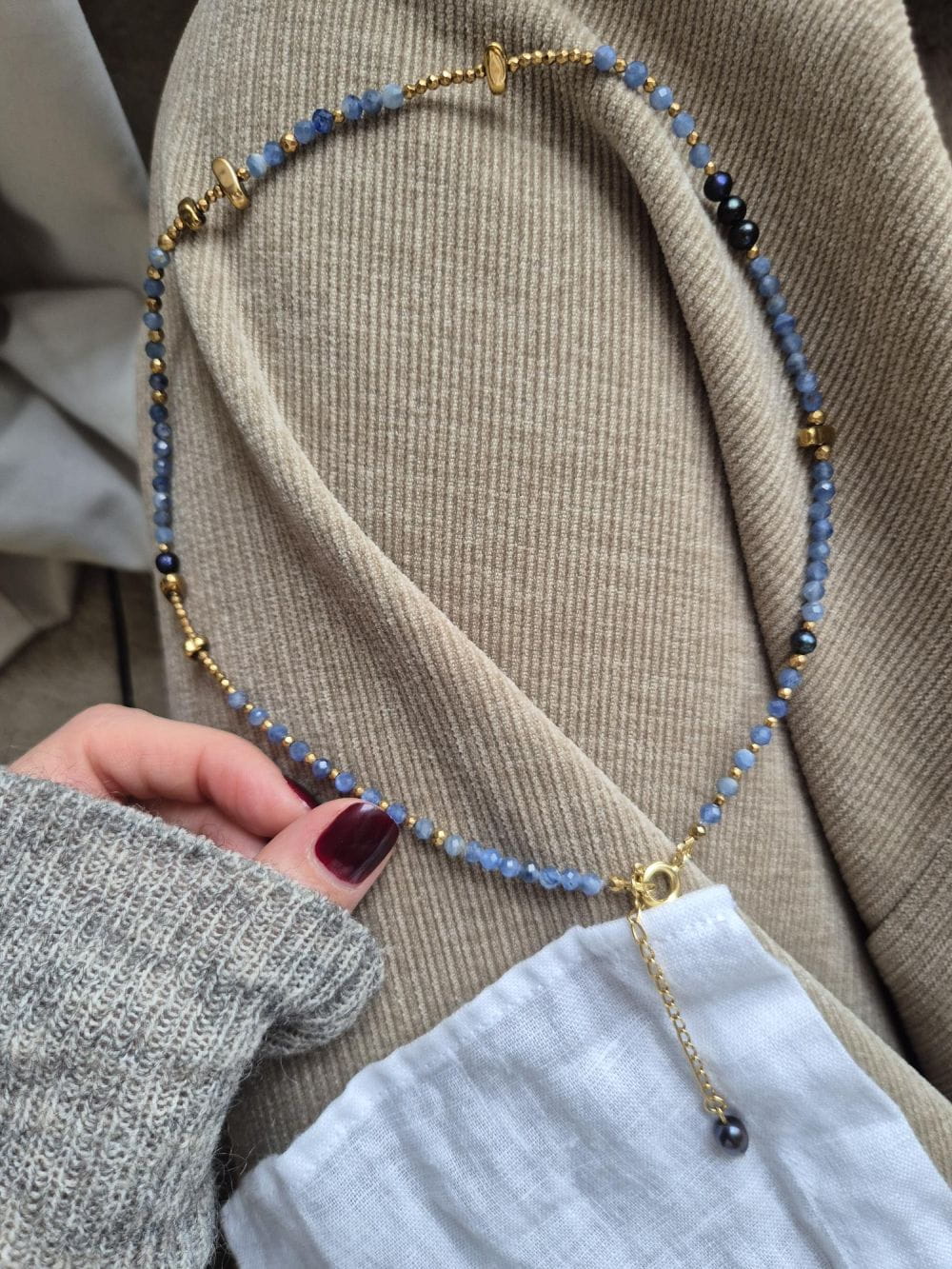Każdy kamień w tym naszyjniku jest unikatowy — dzięki temu każda sztuka jest jedynym w swoim rodzaju, niepowtarzalnym dziełem natury i ręcznego rzemiosła.