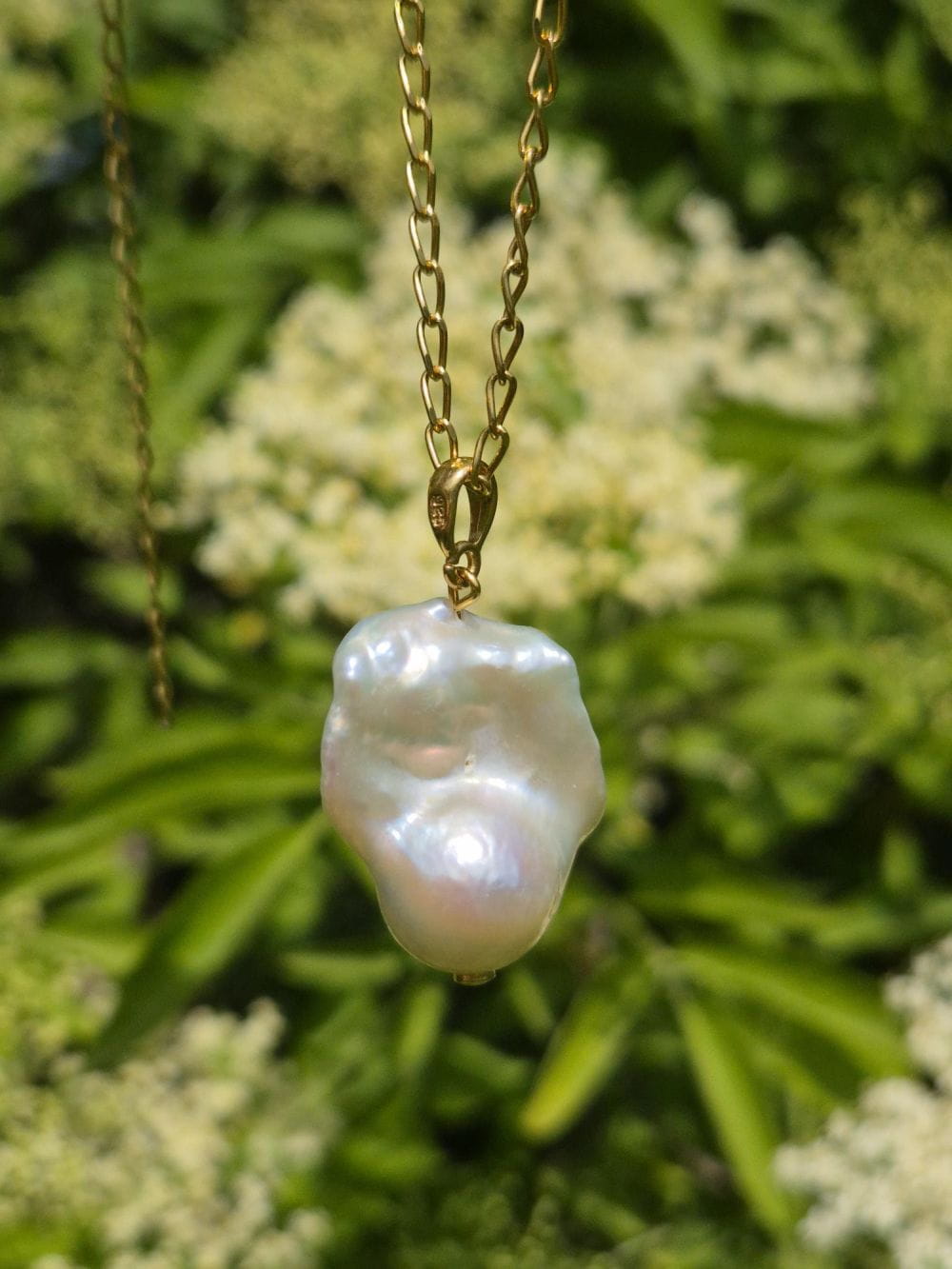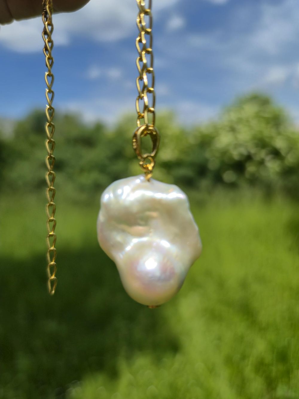 Romantyczny wisiorek z naturalną perłą barokową i pozłacanym srebrem